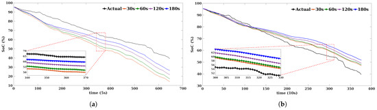 Another remark that can be drawn from the results of the proposed approach is, the collect step plays a role in the accuracy of the results. Actually, from the errors metric, presented in Table 4, a collect step of five seconds is suitable for forecasting the SoC in trajectory A; however, for trajectory B, using a collect step of 10 s yields good results. Additionally, the errors of the proposed approach are much smaller than those of direct SoC forecasting, and between Full LR and Batch LR errors.