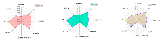 In this part, by comparing the MAPE, RMSE, MAE, and of each model, the prediction effect of each model is analyzed.