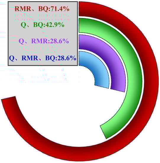 The sum of the areas where the classification results of different methods are the same and the ratio of all the tested areas is the coincidence rate, expressed as a percentage, and the mutual anastomosis rate between the three methods were analyzed, and the results are shown in Figure 2 in the deeper areas, the traditional rock mass classification methods are difficult to produce consistent results due to different factors considered by each method.