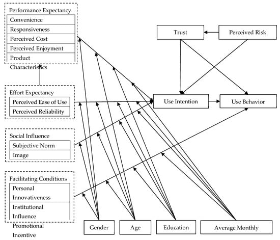 - Venkatesh, V.; Thong, J.Y.L.; Xu, X. Consumer Acceptance and Use of Information Technology: Extending the Unified Theory of Acceptance and Use of Technology. MIS Q. 2012, 36, 157–178. [Google Scholar] [CrossRef]