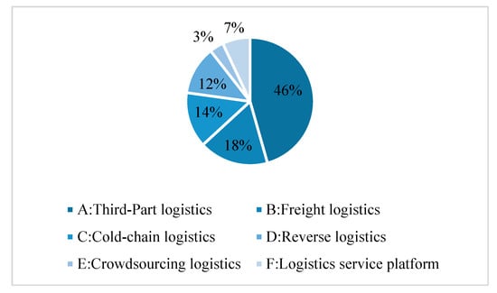 Figure 4 shows the percentage of literature for each logistics scenario. The hot research scenarios for logistics pricing are TPLs (46%), freight logistics (18%), cold chain logistics (14%) and reverse logistics (12%), in that order. The research on the pricing decisions of TPLs is mainly focused on the two-tier or three-tier supply-chain system consisting of suppliers, TPLs and manufacturers. In addition, the pricing problem of a logistics service supply chain (LSSC) composed of LSI and FLSP is also a hot topic, especially the internal pricing decisions of LSI and FLSP. Special emphasis in the future research should be placed on the analysis of LSSC’s pricing in multilevel supply chains composed of manufacturers and suppliers, as well as the pricing strategy of 3PL in competitive markets. In the freight logistics scenario, scholars are more concerned with the cooperative pricing of road freight forwarders and the pricing problem of multimodal transportation. In the future, we can continue to focus on the pricing strategy of multimodal transport, especially some innovative intermodal transport methods, and the comparative of intermodal participants operating independently and jointly. In addition, with the development of economic globalization, the pricing strategy of air transportation also deserves more attention. The participants in the pricing scenarios of cold chain logistics and reverse logistics are relatively fixed. Among them, the key to pricing in cold chain logistics is to coordinate the prices of cold chain logistics service providers under the condition of ensuring the freshness of products. On the other hand, the pricing strategy of reverse logistics is related to the characteristics of the product itself. Companies aim to increase the product recovery rate through the pricing strategies. The pricing of crowdsourcing logistics and logistics information platforms is less studied at present, constituting a research gap.