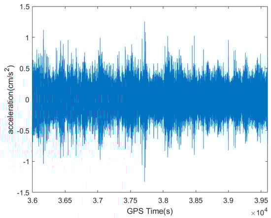 An hour (GPS time of 36,000–39,600 s) of monitoring acceleration raw data in the north direction.