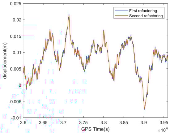 Comparison of the low-frequency displacement amplitude of GNSS data after the first refactoring and the second refactoring.