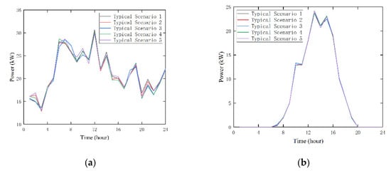 Five typical scenarios. (a) Typical WT scenarios; (b) typical PV scenarios.