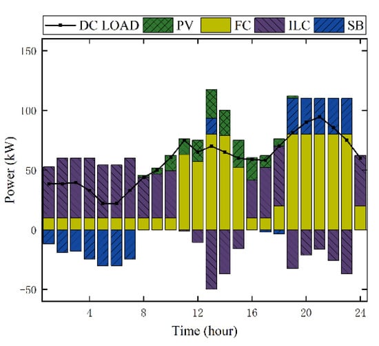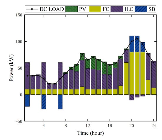 where denotes the types of DC sub-microgrid power supplies, consisting of a PV, FC, and BS; the rest of the formula types are similar to the AC sub-microgrid and will not be described individually.
