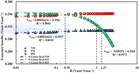 (4) Although PM showed the highest economic benefits, it had the lowest comprehensive benefits, followed by BM and NM. Only when the cost of BM material dropped to less than 1.37 times the cost of PM did the economic benefit of BM outcompete NM and result in a more acceptable and promising farming solution to boost environmental sustainability.