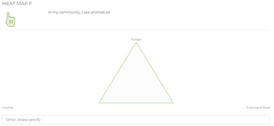 The illustration in Figure 3 below shows the interactive mapping tool, which allowed each participant to locate their responses either at one of the labelled corners of the triad, or anywhere in the middle. Triads will then be presented that can colour- or pattern-code responses based on gender, age, location, or other characteristics for visual analysis.