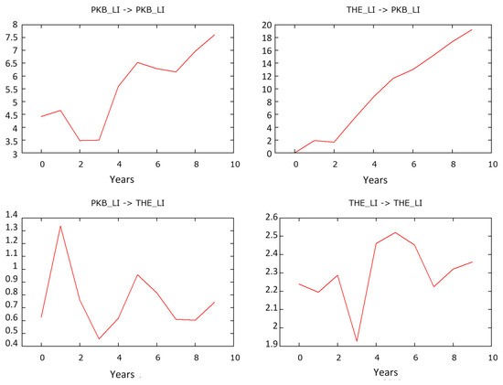 Summing up, it can be stated that there was no confirmation of the existence of unambiguous, one-way relations between the studied variables in the three analyzed groups of countries (Table 5). Perhaps, in high-income countries, there is a feedback loop between GDP levels and total health spending. By contrast, in low-income countries, GDP appears to depend on health expenditure per capita three years ago. Upper-middle income countries may record the opposite relationship—as their GDP level rises, they can afford to incur ever higher expenditure on health.