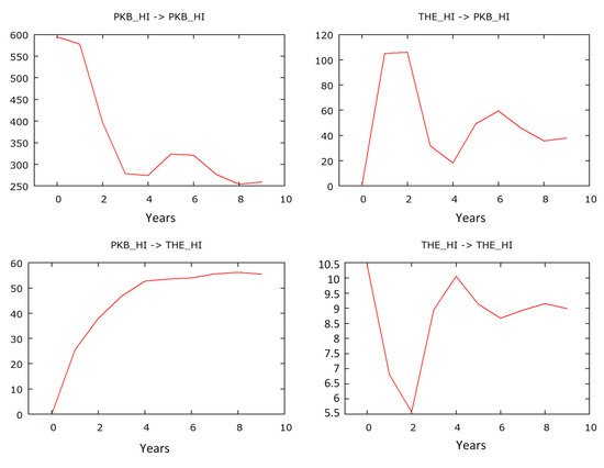 These relations might be visualized on charts. The charts below show the impulse responses over the 10-year forecast horizon (Figure 10, Figure 11 and Figure 12).