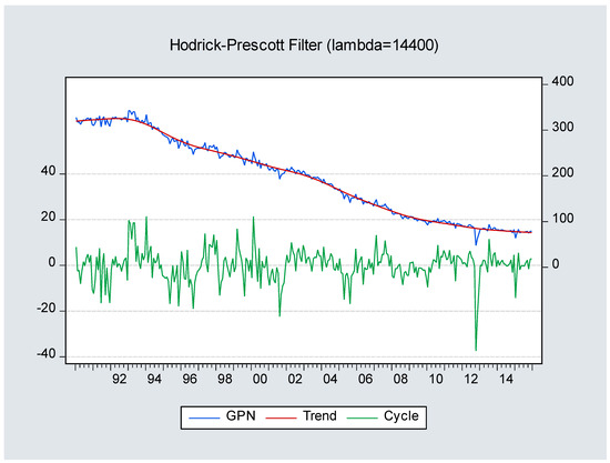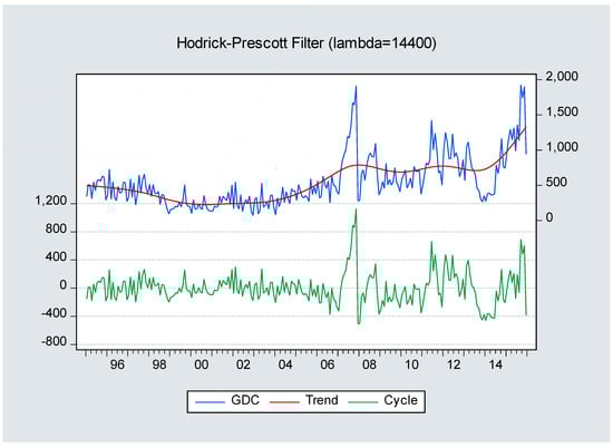 - De Jong, R. The Econometrics of the Hodrick-Prescott Filter. Rev. Econ. Stat. 2016, 98, 310–317. [Google Scholar] [CrossRef]