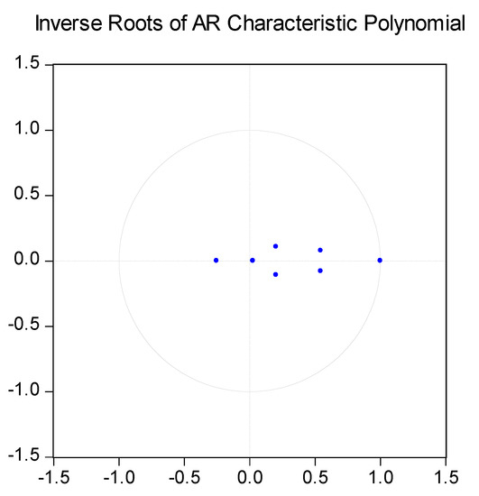 Diagnostic tests were important in validating the parameter evaluation of the outcomes achieved by the model. The VAR was tested using the AR Roots test and serial correlation, and the results are indicated in Figure 4.