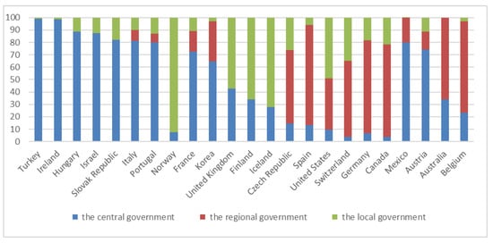Distribution of compulsory education expenditure by level of government 2015. Data Source: OECD. Education at a Glance 2019: OECD Indicators. Paris, 2019 [25].