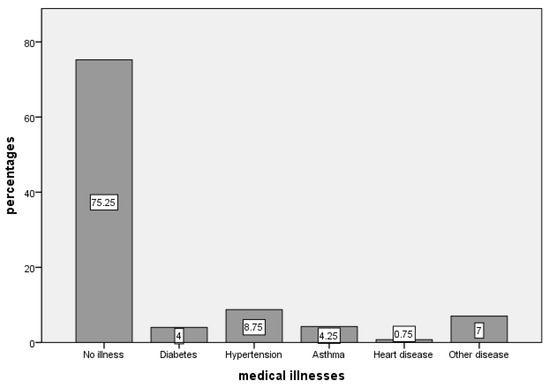 Underlying medical illnesses among the respondents.