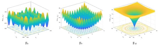Because metaheuristic algorithms are stochastic, numerous test cases must be used to approve an algorithm’s efficacy. The performance of WEA is examined in this study using a well-studied set of benchmark problems from the literature [84,85], as well as a great combination of well-established algorithms. All of these are minimizing problems that may be used to assess the search efficiency and convergence rate of optimization algorithms. Table 1 and Table 2 provide the details and mathematical formulation of these test functions [63]. Figure 2 and Figure 3 show three-dimensional illustrations of these benchmark functions.