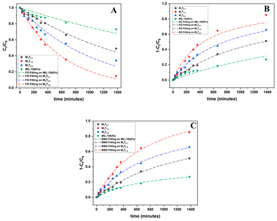 (A) FO kinetic fittings on each component; (B) SO kinetic fitting on each component; (C) BMG kinetic fittings on each component.