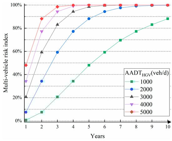 Multi-vehicle risk index with different AADTHGV (AADT = 20000 veh/d).