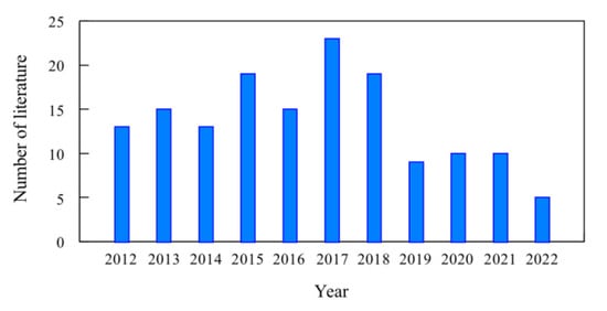 In the Elsevier Science Direct database, we included “Destination Image” in the title, keyword, and abstract, the article source was TM, ATR, or IJHM, and the time of publication was “1 January 2012–1 February 2022”. A total of 144 articles were retrieved, and 97 articles were obtained after eliminating the irrelevant ones; among them, 68 were published in TM, 24 in ATR, and 5 in IJHM. In the EBSCO database, we searched for articles published in JTR between 1 January 2012 and 1 February 2022 by topic, title, and keyword “Destination Image”, and then eliminated the same articles in the three searches, and found a total of 34 relevant articles. In the Taylor & Francis database, we searched for articles published in JST or JHMM between 1 January 2012 and 1 February 2022 with the title, keywords, and abstract containing “Destination Image”, and found a total of 30 articles. A total of 20 papers were obtained after excluding irrelevant papers, with 9 papers published in JST and 11 papers published in JHMM. A total of 151 papers were retrieved from the three databases. The year and distribution of the literature are shown in Figure 1. In general, more literatures were published in TM because most of the destination image studies are based on marketing perspective. At the same time, TM is focused on the management, planning, and policy studies of travel and tourism.