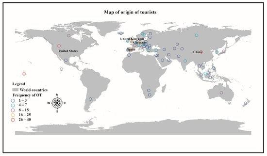 Map of origin of tourists (Note: OT indicates origin of tourists. Source: Based on relevant literature).