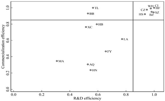 - Lin, S.; Sun, J.; Wang, S. Dynamic evaluation of the technological innovation efficiency of China’s industrial enterprises. Sci. Public Policy 2018, 46, 232–243. [Google Scholar] [CrossRef]