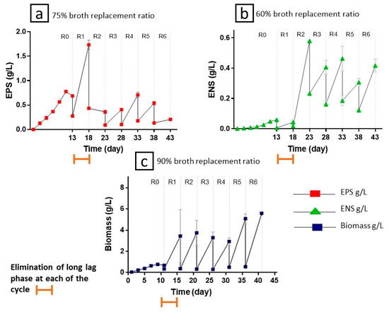 3.2. Repeated-Batch Fermentation Using Validated EPS–ENS–biomass Condition