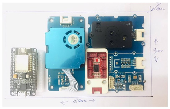 In total, five such devices were built by the authorial team. Each device was worn by the first and second authors and by their adolescent peers. The devices measured 12 cm by 6 cm by 2 cm, respectively, and contained a low-cost sensor for each of the preceding environmental variables listed, together with a battery with sufficient capacity to power the sensors over the course of a typical day. The device could be secured to a belt by two regular clothes clips.