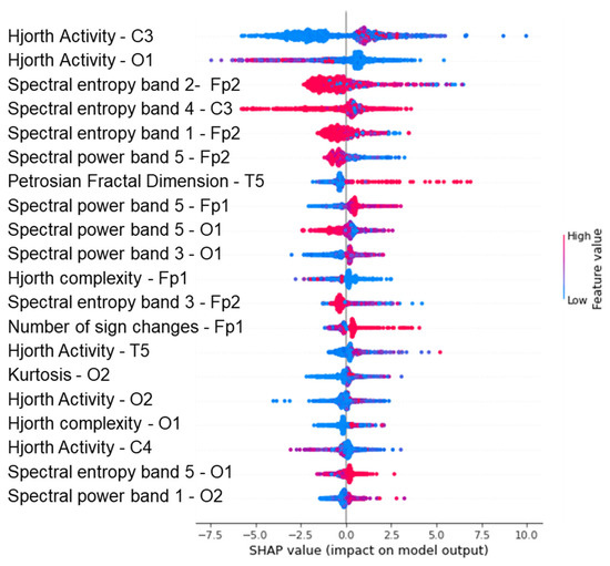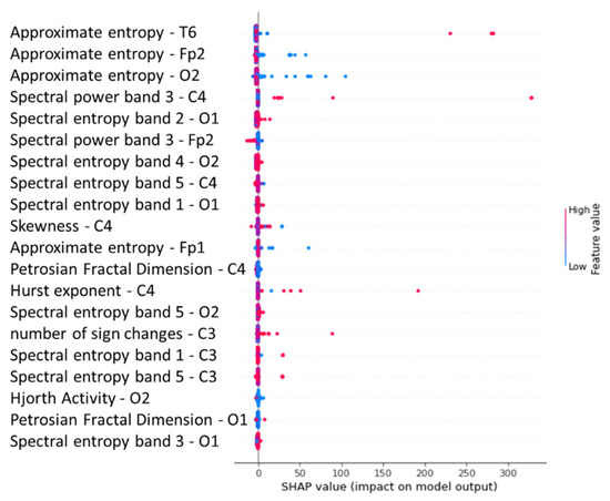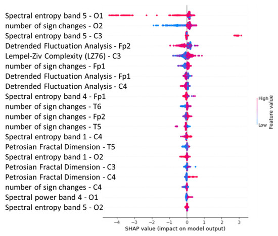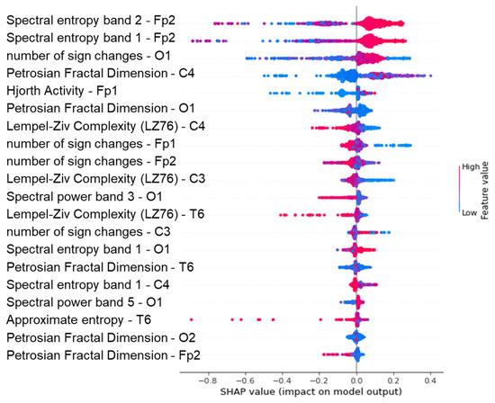 Shapley summary plot of feature extraction random forest regression model of EEG—sound intensity.