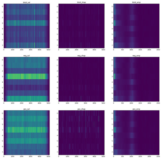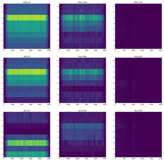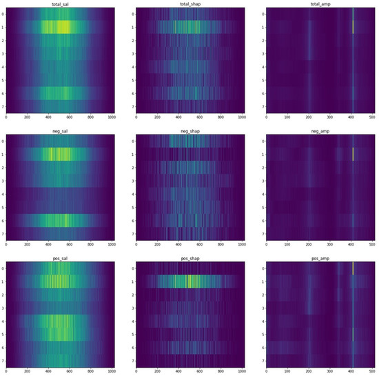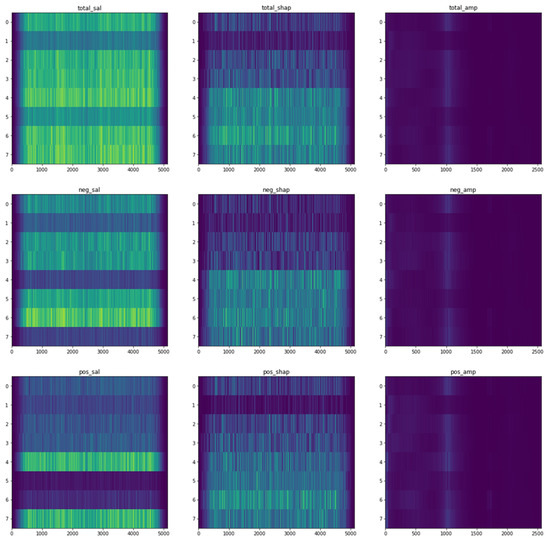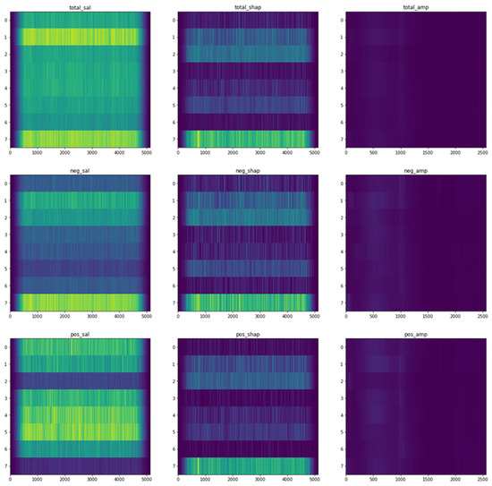 After the preprocessing of the data and the analysis, as described in the preceding sections, both the CNN and the feature extraction random forest regression models were used to analyze the associations between the functioning of brain (EEG) and physiological well-being, with the former model being generally higher in accuracy. For the analysis of the different associations between the functioning of brain (EEG) and the environment, only the CNN models were used. The results of the random forest regression models were interpreted using Shapley values and Shapley summary plots, while the CNN model results were interpreted using saliency maps, Shapley value maps, and frequency–amplitude gradient (FAG) maps.