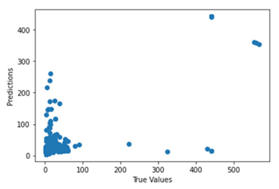 Figure 43 shows the graph of the predicted values against the true values of the CNN model of EEG—sound intensity, and Figure 44 shows the corresponding Shapley summary plot.