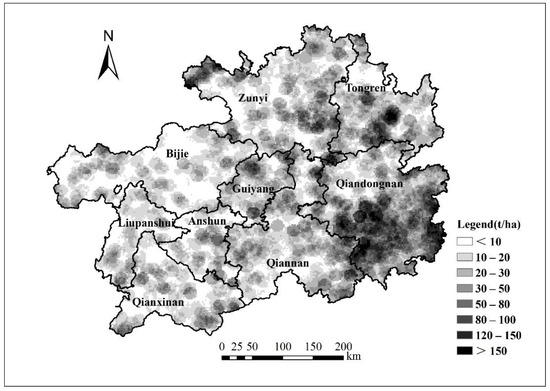 - Tian, X.L.; Xia, J.; Xia, H.B.; Ni, J. Forest biomass and its spatial pattern in Guizhou province. Chin. J. Appl. Ecol. 2011, 22, 287–294. [Google Scholar] [CrossRef]