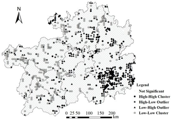 Maps of the Local Moran’s Index of forest biomass in Guizhou Province.