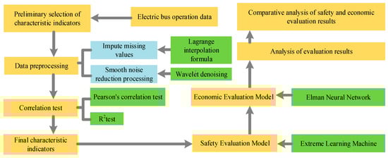 However, the current research on buses mainly focuses on fuel vehicles []. Due to the different energy consumption modes, the evaluation strategy of its operation economy has a certain guiding role for the evaluation of electric buses, but it cannot be directly used. In addition, the evaluation of electric buses requires comprehensive consideration of driving safety and operating economy. Studies addressing how to comprehensively evaluate the safety and economy of electric buses, to the authors’ knowledge, are relatively scarce. The challenges can be attributed to the following aspects: (1) The evaluation index selection for safety and economy evaluation of electric bus is not established; (2) The relationship between safety and economy evaluation of electric buses is not clearly presented, and in-depth discussion on the relationship between safety and economy needs to be conducted. Motivated by the above challenges, this study aims to comprehensively assess the safety and economy of electric buses, clarify the selection method and process of evaluation indexes for the given dataset, and proposes a method with a better evaluation effect. Based on a given dataset of electric buses, appropriate methods are used for data pre-processing and evaluation indicators are selected by different correlation testing methods and safety and economic analysis processes. A relatively complete set of data processing and index selection methods is proposed in this paper. Aiming at the safety and economy evaluation of passenger vehicles, considering the high computational efficiency of ELM and the excellent stability of Elman neural network, the safety evaluation model based on ELM and the economy evaluation model based on Elman neural network are constructed. After analyzing the evaluation results, the safety and economy evaluation results are compared and the relationship between the safety and economy of electric buses is further discussed.