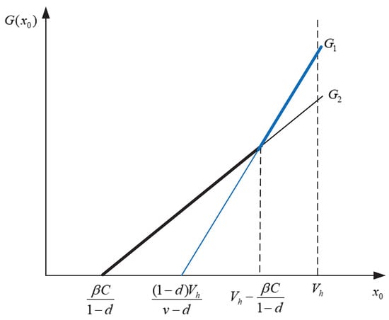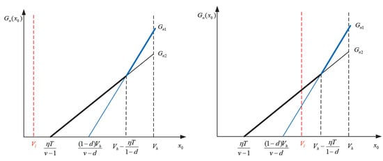 For Case 2 (), the consumer determines the real purchase amount by comparing to . When , the optimal purchase decision is shown in Figure 4. If and , that is, and , then , since , so when , the shipping-fee-sensitive consumer’s optimal purchase decision is , and the delivery of the order will be delayed. If and , that is, and , then . Thus, when , the shipping-fee-sensitive consumer’s optimal purchase decision is , and the order will be delivered normally.