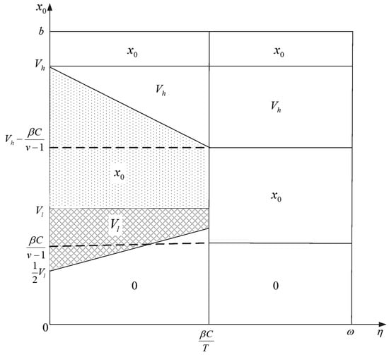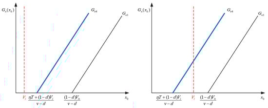 For Case 3, when , the optimal purchase decision is shown in Figure 5. If , the shipping-fee-sensitive consumer gives up purchasing, . If , the shipping-fee-sensitive consumer’s optimal purchase decision is , and the delivery of the order will be delayed.
