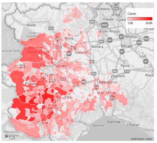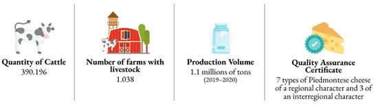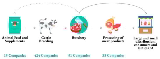 - Quantitative and Qualitative Data Analysis: once the current state and main challenges for each supply chain were taken into account, information regarding the distribution of actors in each step of the chain was procured by employing two datasets: one, provided by the Piedmont Region joint Chambers of Commerce (Unioncamere Piemonte) [50], containing statistical and location data for all the companies registered within the region, and the other by the University of Gastronomic Sciences’ Food Industry Monitor, a performance observatory containing historical financial data for the most relevant companies in the Italian food sector. Both datasets were filtered by only including the companies whose economic activity code (Codice ATECO) was within those belonging to the mapped supply chain, with a resulting total of 3261 records analyzed. In addition to individual company data, other statistical databases for each of the supply chains analyzed were taken into consideration, in order to better understand the complexity and scale of each one. Namely, the regional and national agricultural registries were consulted for a region-wide perspective on the data that is reported by each supply chain’s multiplicity of actors to the regional and national governments.