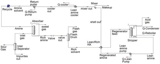 The AGRU flow sheet constructed with the Aspen HYSYS.