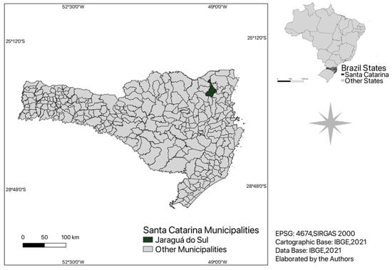 This study uses data from Jaraguá do Sul conurbated area, located in the south of Brazil. More specifically, it is located in the Santa Catarina State and integrates the metropolitan region of the north of the state, as shown in Figure 2. Jaraguá do Sul, the main city of the studied region, presented a high Human Development Index (0.803), which is in the first positions of the national ranking (34th in Brazil and 8th in Santa Catarina). The city hosts several industries in the metal and mechanical sectors. In addition, clothing sectors and both technology and service companies are present in Jaraguá do Sul, which influences regional and national economies.