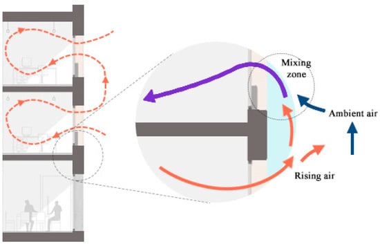 Transmission of air particles in the case of buoyancy-driven single-sided ventilation, adapted with permission from [].