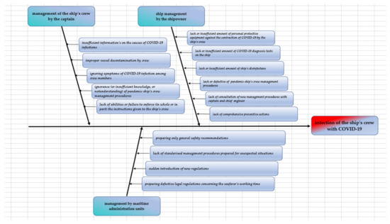 RCA (Root Cause Analysis) of the root causes of COVID-19 infections of sea-going crews allowed us to distinguish their main causes and subcauses, which include (Figure 1):