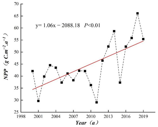 Significant of interannual variation in NPP in the study area from 2000 to 2019.