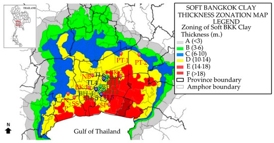 - Horpibusuk, S.; Shibuya, S.; Fuenkajorn, K.; Katkan, W. Assessment of engineering properties of Bangkok clay. Can. Geotech. J. 2007, 44, 173–187. [Google Scholar] [CrossRef]