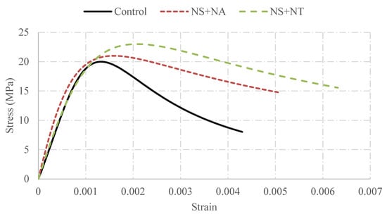 Jian et al. [6] showed that cement pastes prepared with nano-alumina exhibited higher compressive strength at all time increments compared to cement pastes prepared with ordinary concrete. They explained the incremental increase in strength with the presence of nano-alumina due to the reduction in macropores and the accelerating effect on cement hydration motivated by nano-alumina. Mustafa et al. [7] showed that the replacement of cement with nano-silica, up to 2% of the cement weight, increased the compressive and flexural strengths of concrete, whereas increasing the replacement percentage beyond 2% has an insignificant effect on the compressive strength. They also showed that increasing the replacement percentage up to 3% decreased the compressive strength of concrete. Elkady et al. [8] studied the effect of indirect elevated temperature on the compressive and bond strengths of concrete made with three percentages of 1.5, 3, and 4.5% of nano-silica (NS). They showed that the dispersion of nano-silica significantly influenced the mechanical behavior of concrete, especially when using low percentages of NS. The bond strength was significantly improved with NS, but the bond strength rapidly deteriorated when the concrete was exposed to heat.