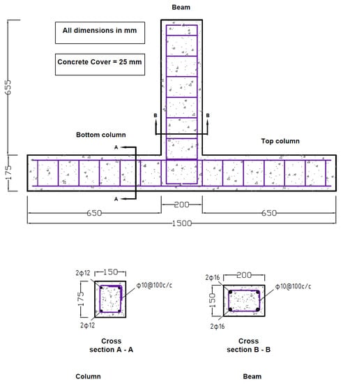 Murad et al. [12] tested several beam−column joint sub-assemblages prepared from concrete modified with pulverized fuel ash, silica fume, and iron filing, and then subjected them to cyclic loading. Two different percentages were used, 15% and 20%. They found that the optimum percentage was 15%, whereas increasing the replacement percentage to 20% reduced the concrete compressive strength, weakened the joint, and reduced its ductility. Beam−column joints prepared with 15% pulverized fuel ash has the best performance. Murad [13] found that fabric-reinforced cementitious matrix FRCM composites considerably enhanced the ductility, drift ratio, and initial stiffness of the joint specimens up to 166%, 66%, and 11%, respectively. Murad also recommended using the U-shaped configuration to increase the ductility of the joint. Murad and AlSeid [14,15] recommended CFRP ropes and polylactic acid and carbon fiber 3D printed bars to strengthen and repair RC joints subjected to cyclic loading. They found that CFRP ropes increased the load carrying capacity, drift ratio, and the ductility of the heat-damaged joint specimens up to 50%, 98%, and 53%, respectively. The 3D printed bars significantly improved the ductility of the heat-damaged RC joints up to 206%.
