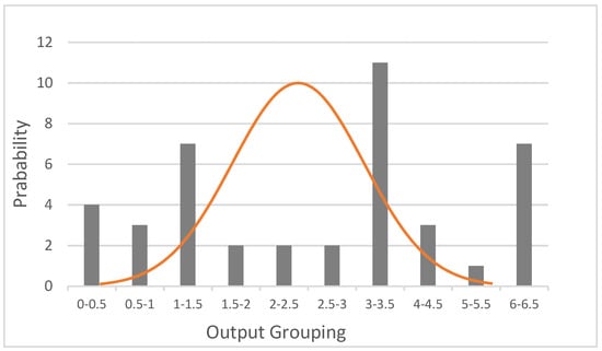 GSA used the Monte Carlo simulation of input-output post-processing and cumulative distribution functions (CDF) of the Ca-MCSD model. The CDF sensitivity analysis detects the specific regions in specific output values [71]. The Kolmogorov–Smirnov statistic can measure the variability ranges of the output behaviors. This study conducted CDF to compute the standard deviation of the probability distribution and variance probabilities of the Ca-MCSD model by applying this equation , where F is the CFD function, and the sub-criterion value is equal to or less than x, and also applied the equation , where F is determined based on f (i.e., probability density function), the Ca-MCSD model’s CDF has been compared with the normal distribution curve to explore the derivatives and deviations of its outputs. According to Figure 2, the Ca-MCSD model has an exponential cumulative distribution; however, the geometric distribution has an inconstant average rate, especially after a mean (μ= 1.494). The CDF curve has 2.475 standard deviations (σ), which indicates that 70% of the output data lie and are distributed around the mean (μ = 1.494) between −1.045 and +1.045, which equals 0.449 < w < 2.539, and 95% of outputs sit −1.419 and +1.419 around the mean, which equals 0.075 < w < 2.913. CFD and the normal curve intersect at point 4.287, where z (i.e., deviation of data in standard deviation) equals 1.1281. Comparing the goodness-of-fit lines of CDF and the normal distribution curve determines 149% correlation (yCDF = 0.0808x + 0.3912, yn = 0.0541x + 0.373, respectively), since the regression variances of the curves are close to each other (RCDF² = 0.4352, Rn² = 0.4685, respectively). This indicates that the empirical distribution considerably differs from the theoretical distribution.