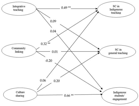 Indigenous teaching strategies to student engaged learning and teachers’ self-concept (** p < 0.01).