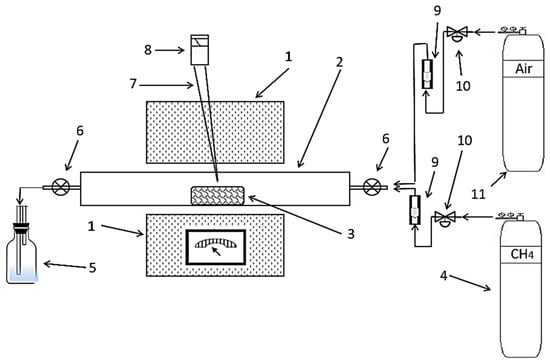 | Excess Air Coefficient (% from Stoichiometric Air) | Composition of the Initial Gas Mixture (Volume %) | |||