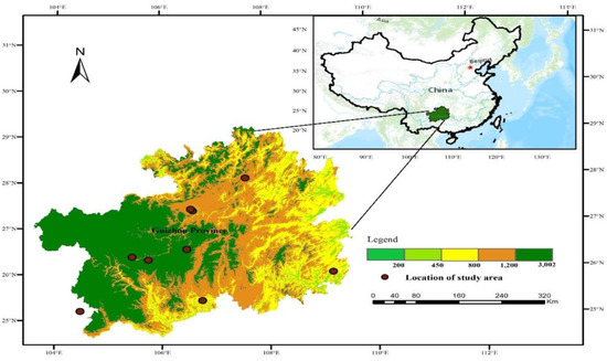 Guizhou Province is located in the mountainous plateau of south western China, 92% of which is mountainous and hilly. It is located on the Yungui Plateau, between 103°36′ and 109°35′ E longitude and 24°37 and 29°13′ N latitude, which is an important part of the Yangtze River Economic Belt. The nine survey areas (Qingzhen City, Weaving County, Qianxi County, Panzhou City, Puding County, Luodian County, Zunyi City, Tianzhu County and Sinan County) are located in the three major watersheds of the Wujiang River, Nanshui Panjiang River and Qingshui River, with a total of 188 reservoirs built and under construction and a total of 702,356 reservoir resettlers having been relocated and resettled. Guizhou is the largest relocation scale and the heaviest relocation task province in China. Therefore, investigating the resettlers within this region is representative and universal. The locations of the areas studied are shown in Figure 3.