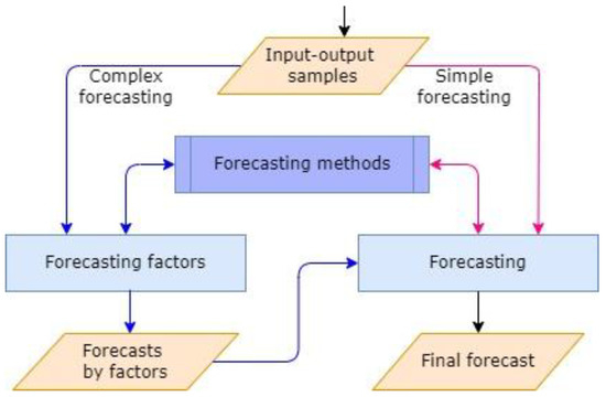 - Complex forecasting, which is multivariate time series forecasting. It is applicable to multifactor forecasting, in which preliminary forecasting of individual factors is performed;