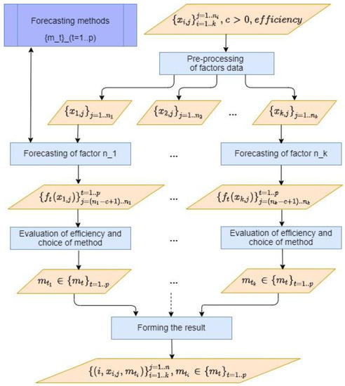 The synergy between mathematics and computer science has led to the development of a wide variety of algorithms, approaches, methods, and tools for forecasting. Widely used, with application in various fields are mathematical and statistical methods including regression and clustering [1,3], time series [4,5], polynomial approximations [6], fuzzy collaborative methods [7], as well as many methods for artificial intelligence predicting, such as machine learning [8,9], etc. On the one hand, this diversity provides an opportunity to choose a specific approach to solving a given task, but, on the other hand, it makes it difficult to find the most effective solution.