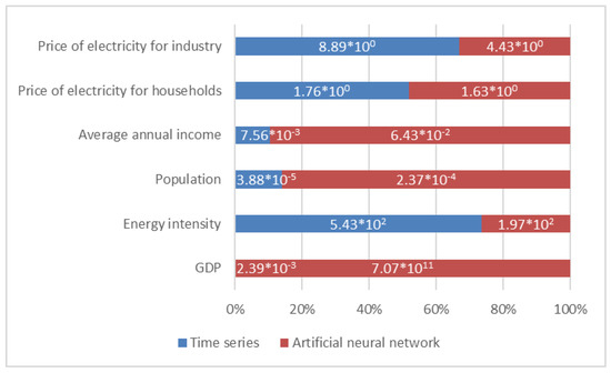 The study showed that the largest impact on the total electricity consumption in the national network belongs to the gross domestic product of the country with , and the least to the average annual income per capita with . For consumption in the industry sector, things are similar. The most significant factor was GDP with , and the one with the least importance was the price of electricity for the household—. The most important factors in the energy consumption of households are population ( and average annual income—.