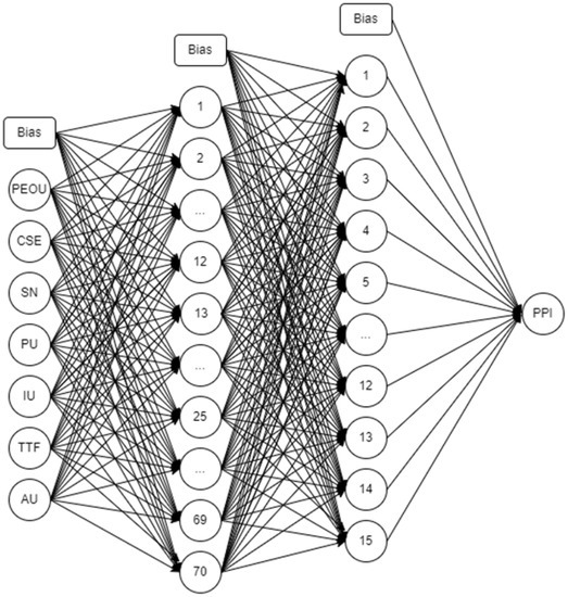 However, several studies have criticized SEM for its limitations due to the presence of mediators. Woody [68] showed how the mediating effect may hinder the significance and relationship of the independent latent variable. In addition, Fan et al. [59] presented how the presence of a mediating effect may lead to preceding variables having little to no significance. Several studies [31,69] have considered the integration of SEM with other tools such as machine learning algorithms to provide justification for the results. Taking into account the study of Yuduang et al. [31], the evaluation of the actual use of an application was evaluated using SEM and neural network hybrid. Their results showed how the utilization of neural networks was able to present the highest importance compared to the causal relationship present in the SEM analysis. Significant factors were identified to be the same, however, relative importance was different. Thus, this study opted to utilize the SEM–DLNN hybrid for the analysis of the adoption and actual use of software testing tools amidst the COVID-19 pandemic.